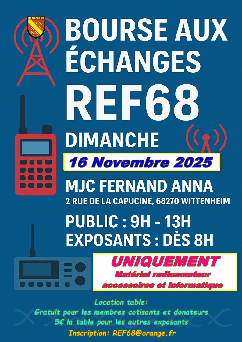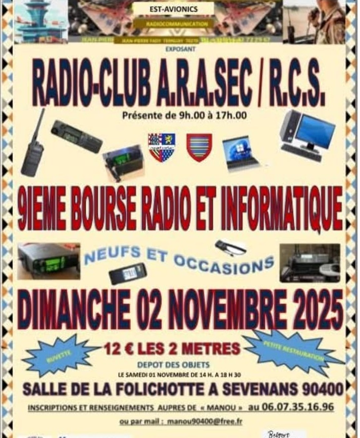 Les habitués de la région comme les radioamateurs de passage pourront accéder au RRF, RI49, FON, BAV, LOC, TEC ainsi qu’au salon spécial du 68, où se retrouvent les OMs de CORASUN.